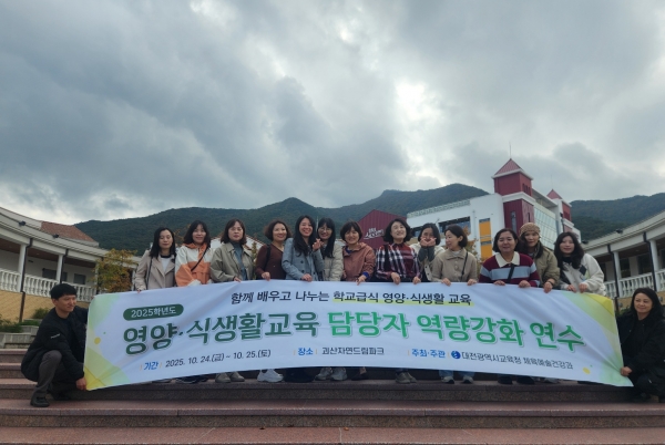 [충청25시] 대전시교육청은 10월 24일부터 25일까지 학교급식의 질 향상과 영양·식생활교육 활성화를 위해‘2025학년도 영양·식생활교육 운영학교 담당자 역량강화 연수’를 실시했다고 밝혔다.