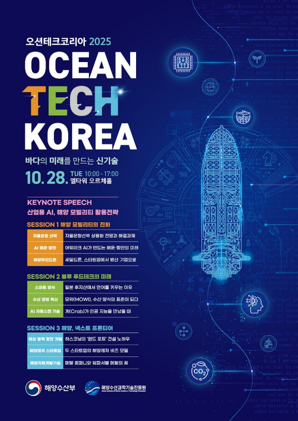 [충청25시] 해양수산부는 10월 28일 서울 엘타워에서 ‘바다의 미래를 만드는 신기술’을 주제로 ‘오션테크코리아 2025’를 개최한다고 밝혔다.