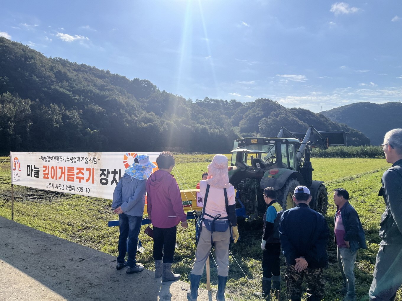 [충청25시] 공주시는 관내 마늘 재배 농가와 농업인을 대상으로 깊이거름주기 기술의 현장 적용 효과를 소개하는 연시회를 열었다고 28일 밝혔다.
