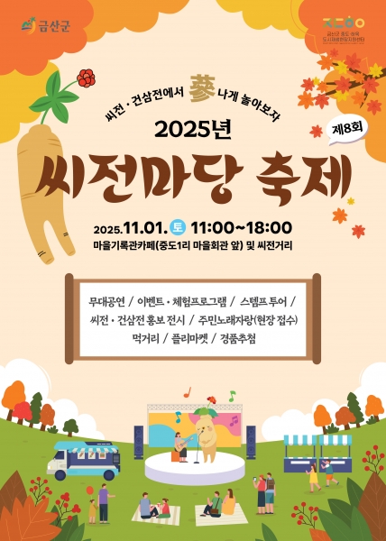 [충청25시] 금산군은 11월 1일 금산읍 마을기록관카페 및 씨전·건삼전 거리 일원에서 금산군 중도·하옥 도시재생사업의 일환으로 제8회 씨전마당축제를 개최한다.