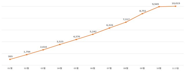이는 전년동기 대비 약 2.9배 높은 금액으로 현재 일평균 거래 금액 유지 시 연말까지 약 1조 1,700억원의 거래 실적을 달성할 것으로 예상된다.