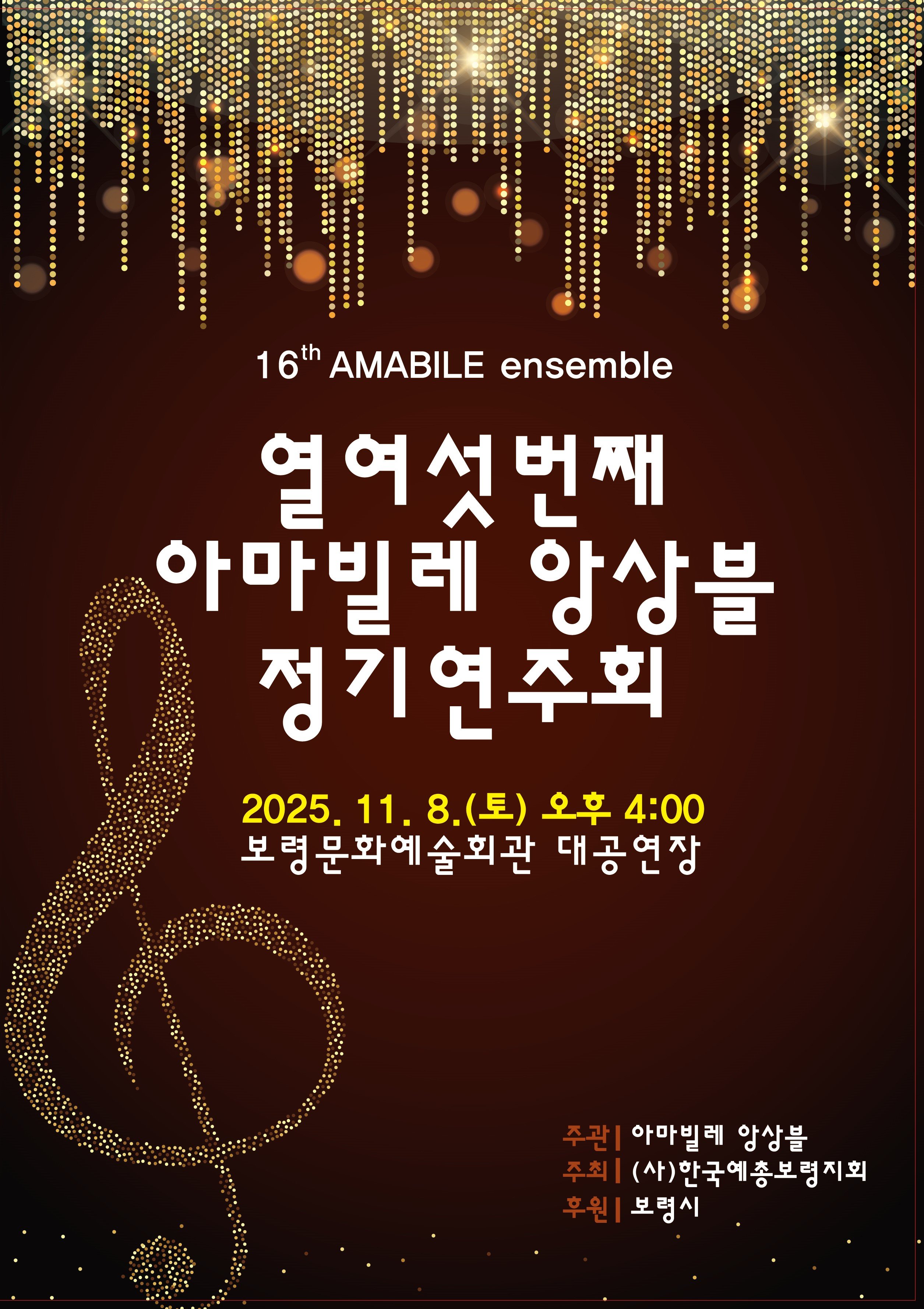 [충청25시] 보령시는 아마빌레 앙상블이 오는 11월 8일 보령문화예술회관 대공연장에서 제16회 정기연주회를 개최한다고 밝혔다.