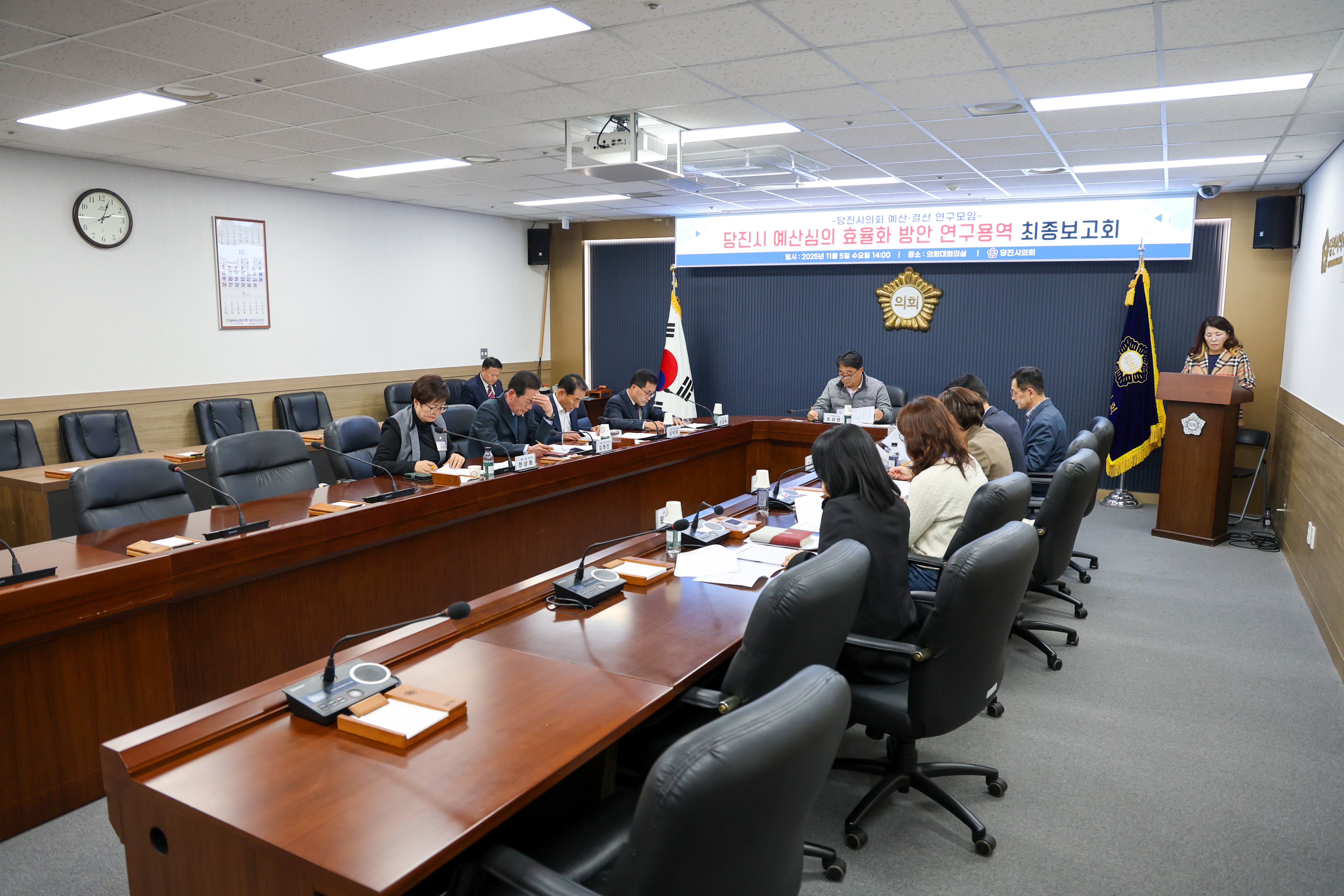 [충청25시] 당진시의회 예산 · 결산 연구모임이 11월 5일 의회 대회의실에서 ‘당진시 예산심의 효율화 방안 연구용역’최종보고회를 개최했다고 전했다.
