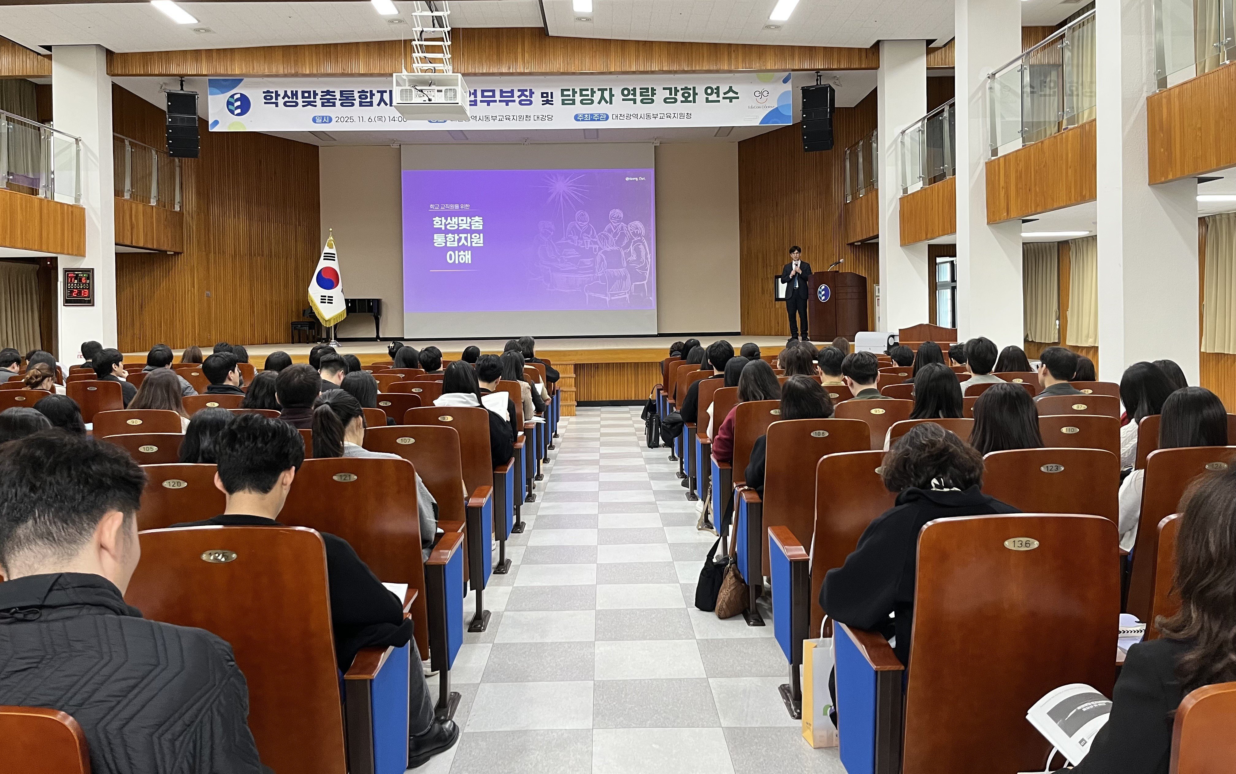 [충청25시] 대전동부교육지원청은 2026년 3월 전면 시행 예정인 ‘학생맞춤통합지원법’에 대비해, 11월 6일 동부교육지원청 대강당에서 관내 초·중학교 학생맞춤통합지원 관련 업무부장 및 담당자 220명을 대상으로 실무형 역량강화 연수를 진행했다고 밝혔다.