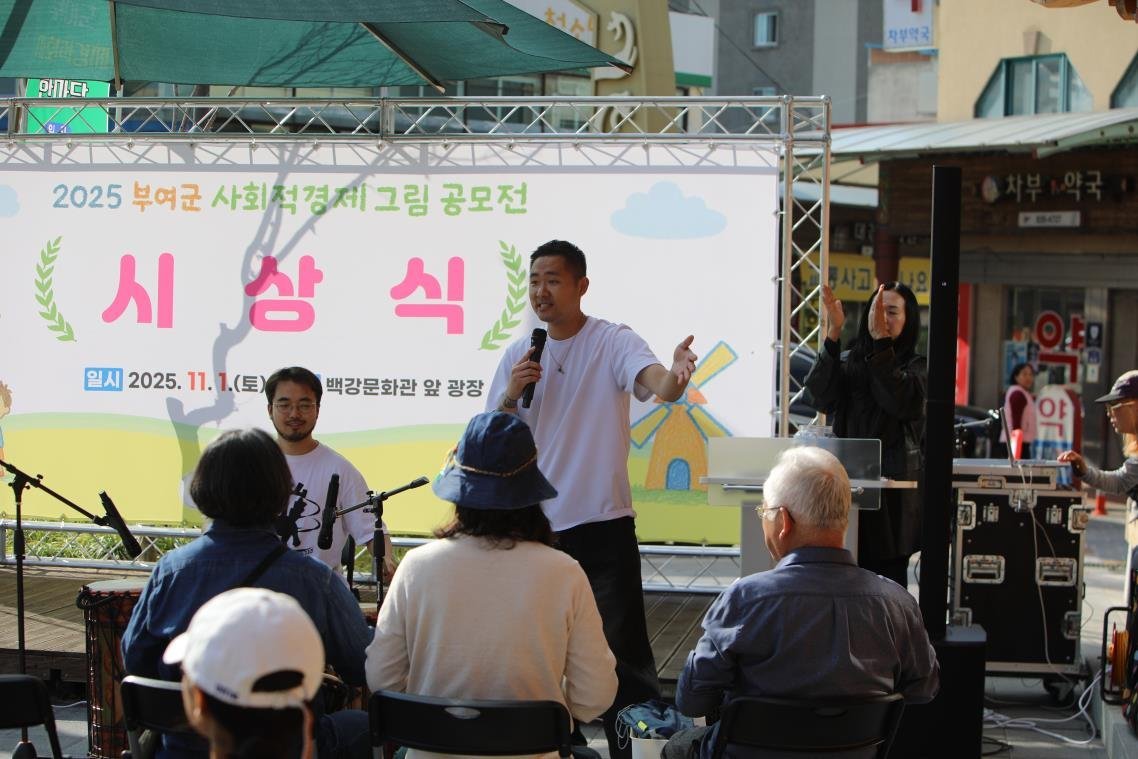 [충청25시] 부여군지역공동체활성화재단은 백강문화관 및 원조먹자골목 일대에서 ‘2025 부여군 사회적경제 한마당’에서 ‘사회적경제 그림 공모전 시상식’을 성황리에 개최했다고 7일 밝혔다.