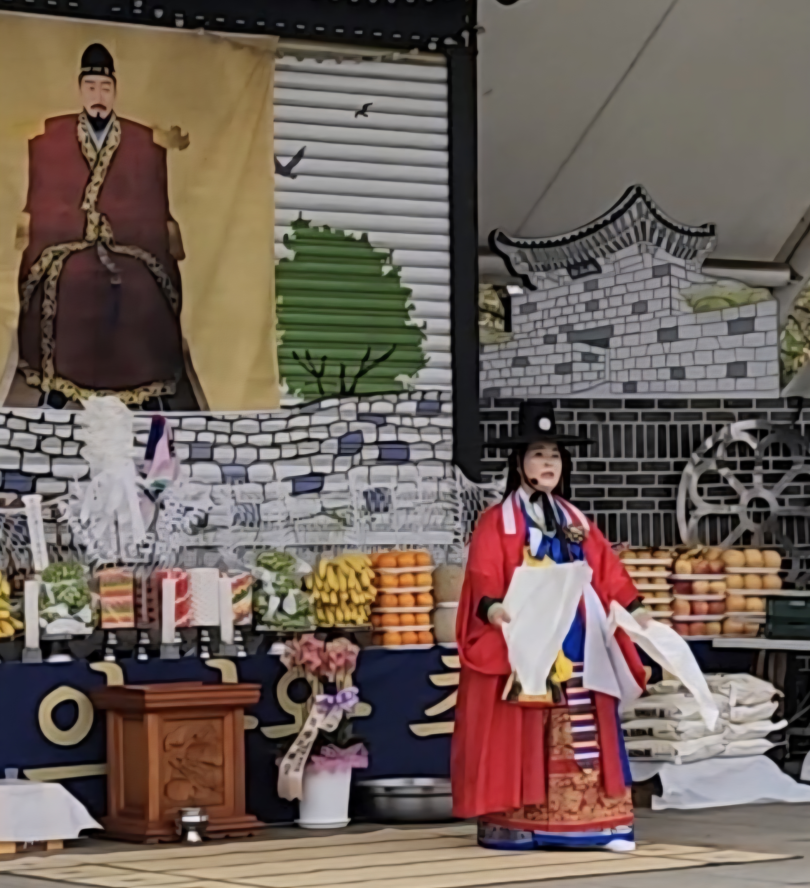 식전행사로 공주풍물패(장꽝)의 사물놀이 시작으로 백제의자왕 위패를 모신뒤 이숙자회장의초경, 신장좌장, 허인성 행사국장의 경문축원을 시작으로 12거리 추모제가 시작됐다.