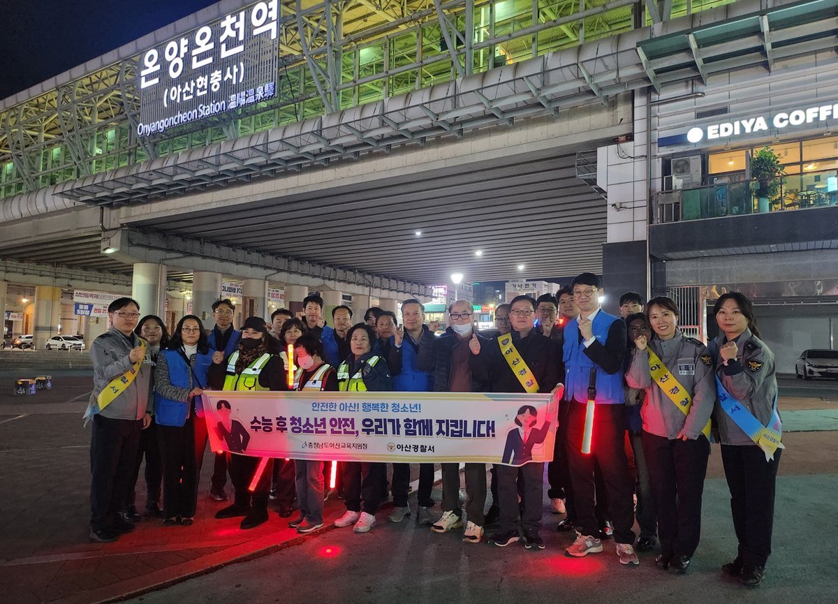 [충청25시] 충청남도아산교육지원청 은 11 월 13 일 저녁 , 수능 이후 해방감에 들뜬 청소년들의 일탈행위를 예방하고 안전한 귀가를 유도하기 위해 지역사회 유관기관과 함께 합동 생활지도 순찰을 실시했다.