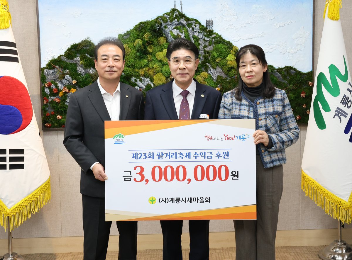 [충청25시] 계룡시는 지난 13일 계룡시새마을회에서 제23회 팥거리축제 수익금 3백만원을 시에 기탁했다고 밝혔다.