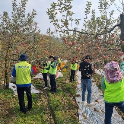 [충청25시] 예산군 세무과는 사과 수확철을 맞아 지난 13일 대술면의 한 사과 농가를 찾아 농촌 일손 돕기를 실시했다.