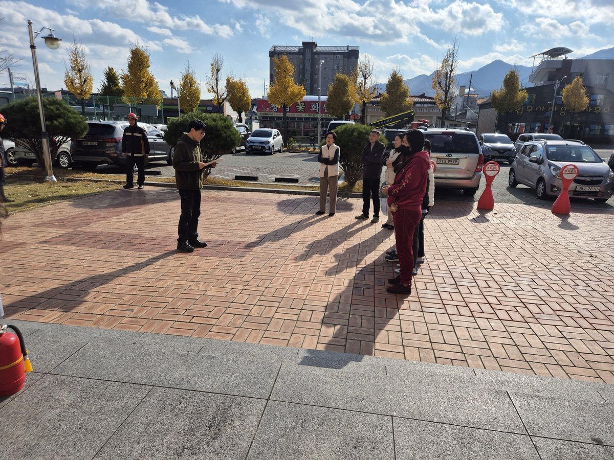 훈련 종료 후에는 자체 소방교육도 이어져 자위소방대원의 임무를 숙지하고 소화기를 이용한 초기 진화 방법 등을 배웠다.