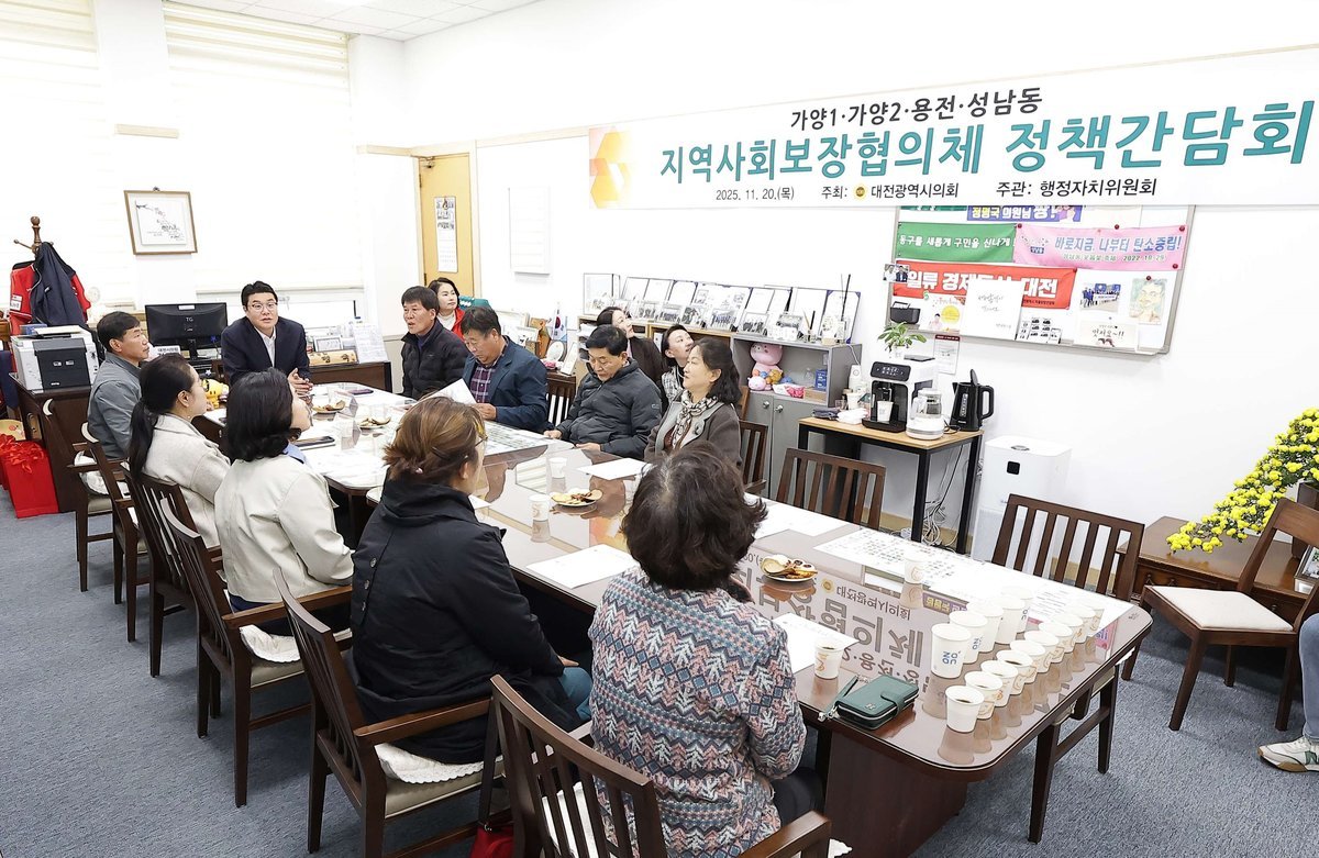 [충청25시] 대전시의회 행정자치위원회 정명국 위원장은 20일 시의회 행정자치위원장실에서 ‘가양1·가양2·용전·성남동 지역사회보장협의체 정책간담회’를 개최하고 협의체 운영 현황과 현장 애로사항을 청취했다.