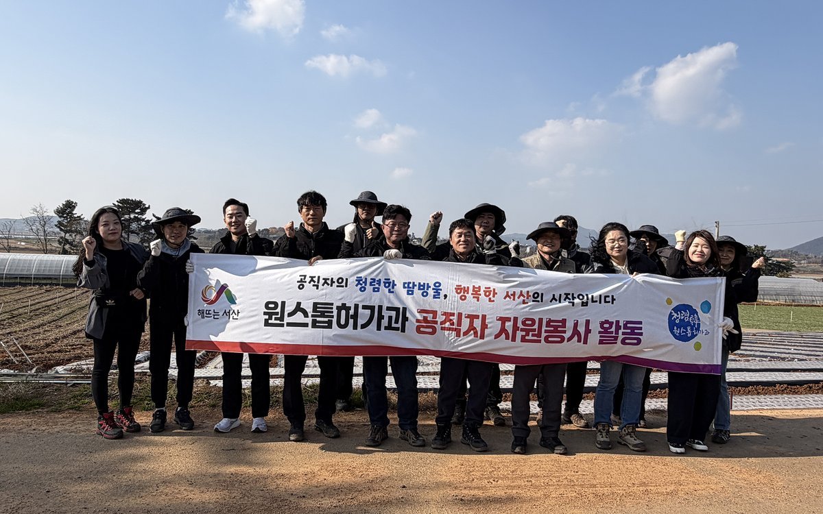 [충청25시] 서산시 원스톱허가과 직원 15명은 지난 20일 일손 부족으로 어려움을 겪고 있는 부석면의 한 농가를 방문해 마늘심기 등 일손돕기를 실시했다.
