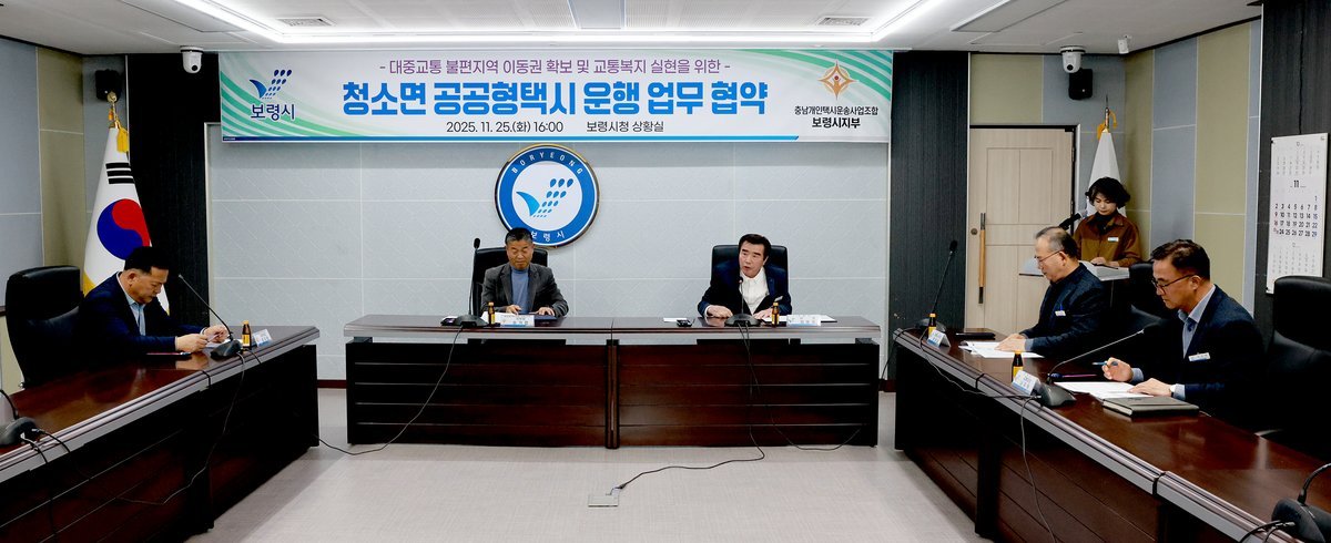 [충청25시] 보령시는 지난 25일 시청 상황실에서 김동일 보령시장과 송기정 충남개인택시운송사업조합 보령시지부장 등이 참석한 가운데 업무협약식을 개최했다.