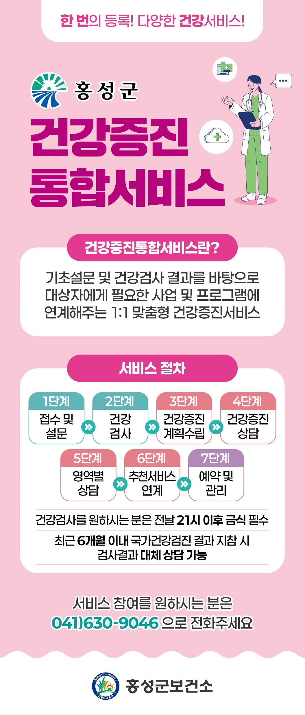 [충청25시] 홍성군은 군민의 생활습관 개선과 실천을 지원하기 위하여 「건강증진 통합서비스」를 지난 8월부터 운영하고 있다고 밝혔다.