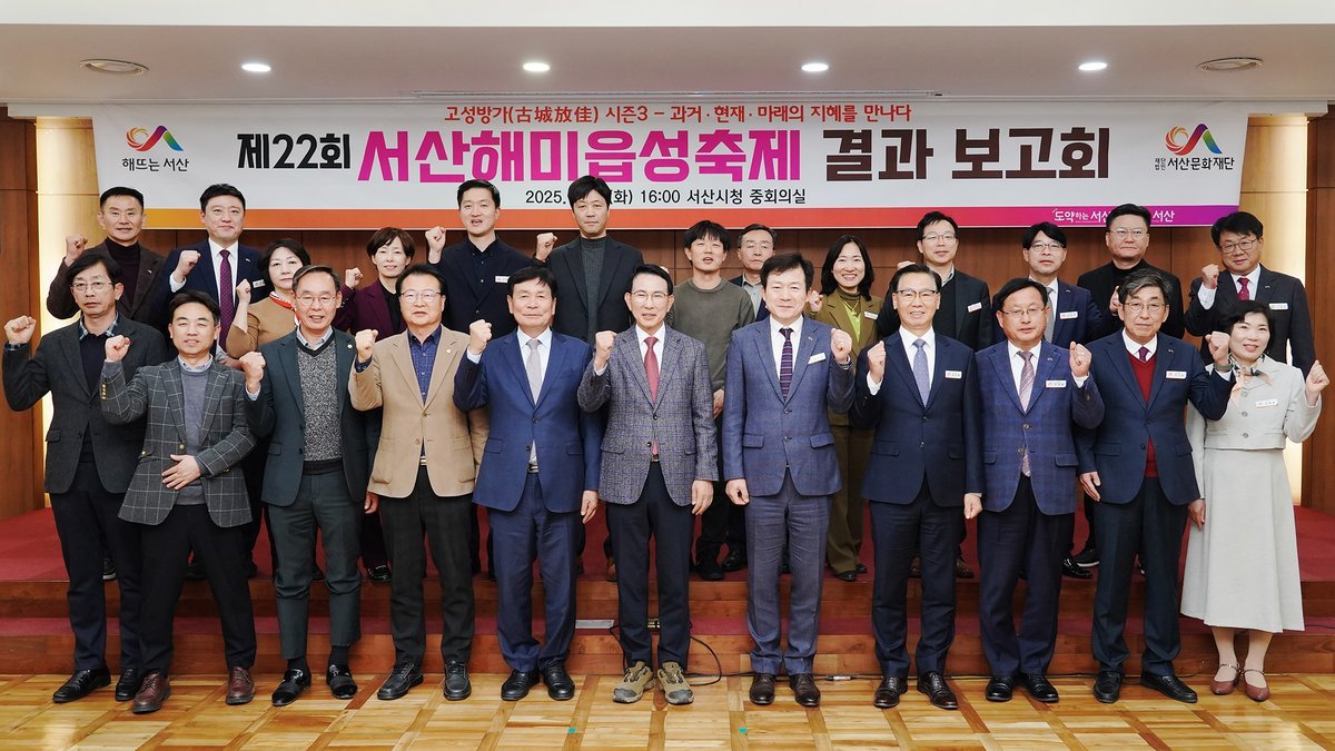 이번 보고회에는 이완섭 서산시장을 비롯하여 부시장, 축제 관계 부서, 서산문화재단 및 대행사 등이 참석하여 올해 축제 운영 성과와 향후 발전 방향을 함께 논의했다.