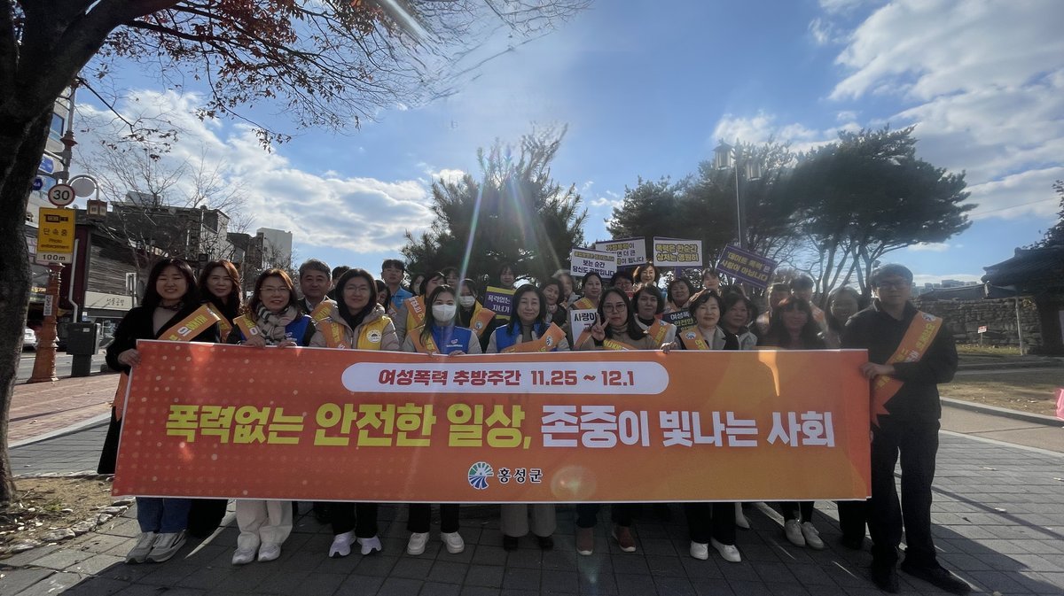 [충청25시] 홍성군은 지난 26일 홍성전통시장과 그 일원에서 여성폭력 근절을 위한 합동 캠페인을 펼쳤다. 이번 캠페인은 여성폭력 추방주간을 맞아, 여성폭력 방지의 의미를 다시 한번 환기하기 위한 자리로 마련되었다.