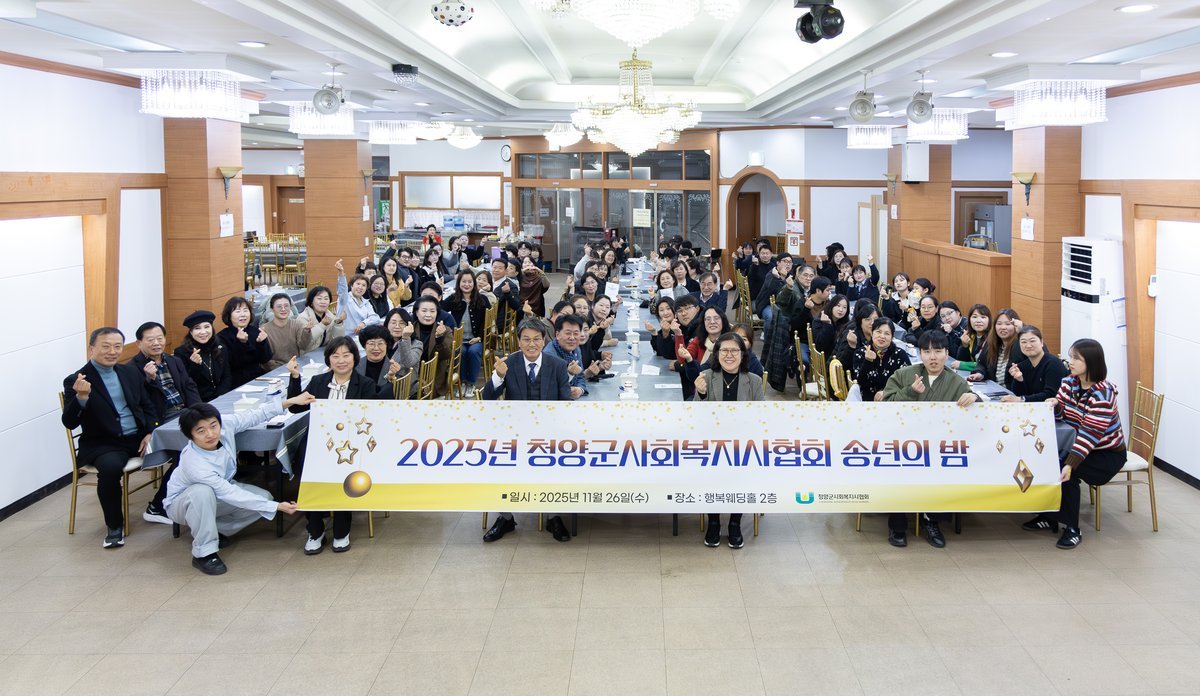 [충청25시] 청양군은 지난 26일 청양읍 행복웨딩홀에서 ‘2025 청양군 사회복지사협회 송년의밤’행사가 성황리에 열렸다고 밝혔다.
