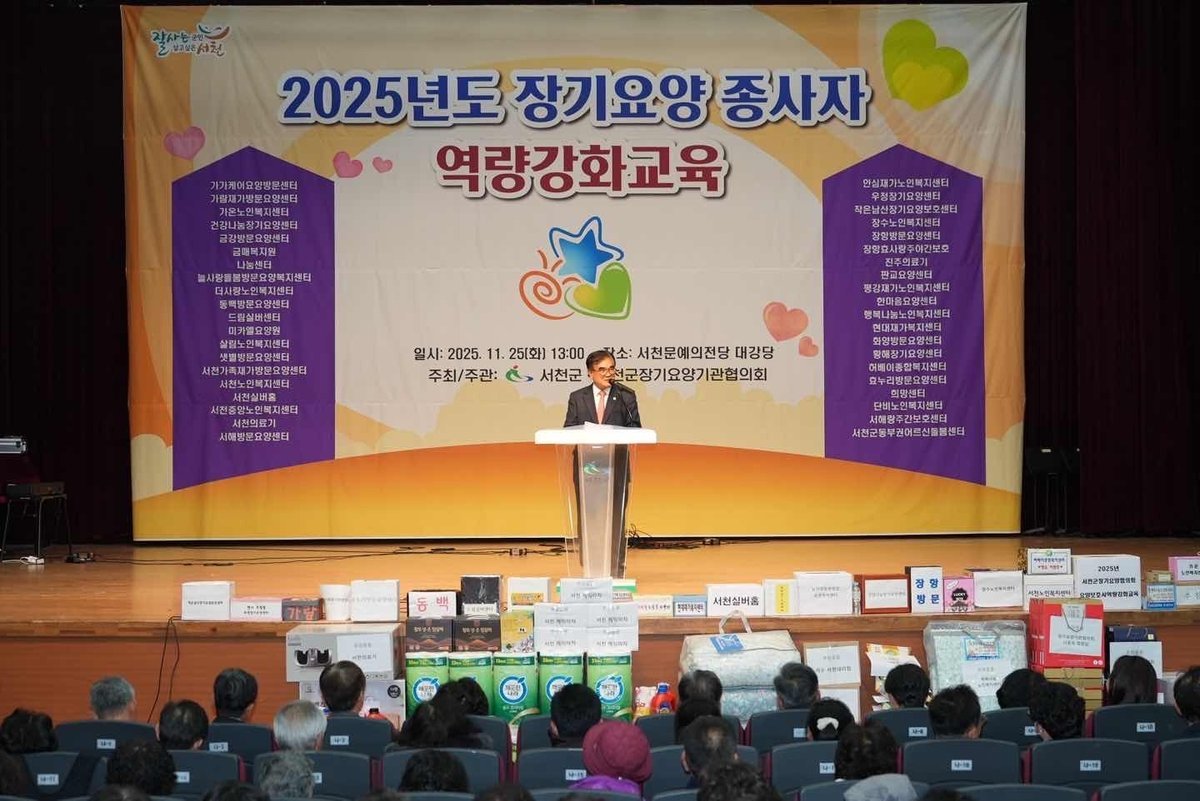 [충청25시] 서천군은 지난 25일 서천문예의전당에서 관내 장기요양종사자 600여명을 대상으로 2025년 장기요양종사자 역량강화교육을 실시했다.