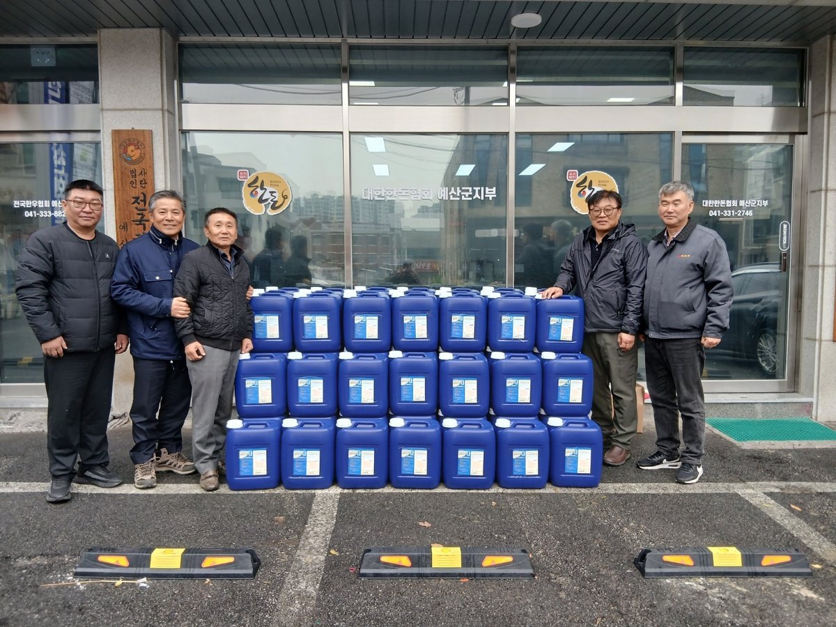 [충청25시] 예산군은 ㈜한동이 예산군축산회관에서 한돈협회 예산군지부에 아프리카돼지열병 차단을 위한 소독약품을 기탁했다고 밝혔다.