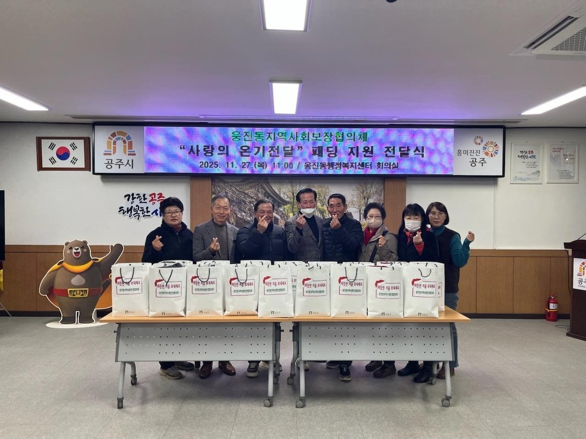 [충청25시] 공주시 웅진동은 지난 27일 웅진동 지역사회보장협의체가 관내 저소득 어르신 17명에게 겨울 패딩을 전달하는 나눔 행사를 열었다고 밝혔다.