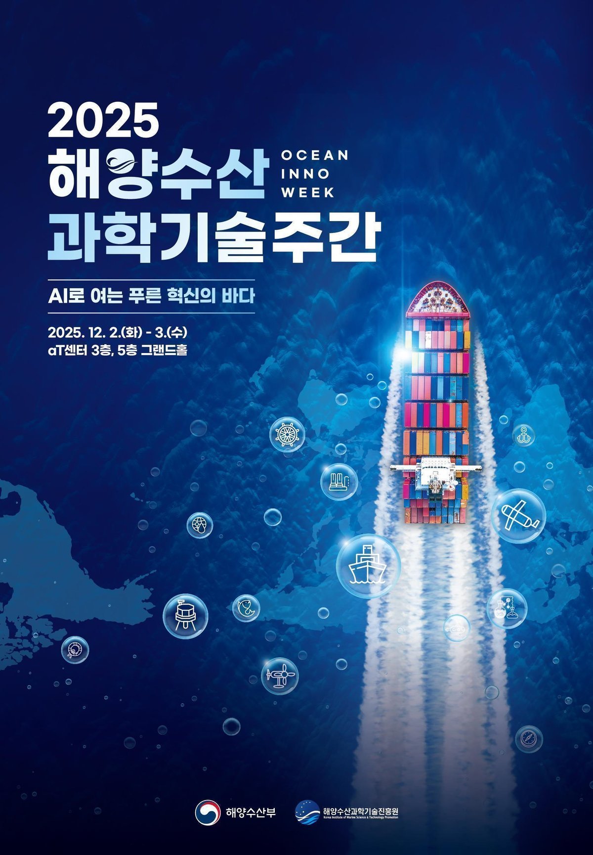 [충청25시] 해양수산부는 해양수산과학기술 연구개발 우수성과를 공유하고 사업화 및 투자유치 등을 지원하기 위해 12월 2일부터 3일까지 서울 양재 에이티센터에서 ‘2025 해양수산과학기술 주간’ 행사를 개최한다고 밝혔다.