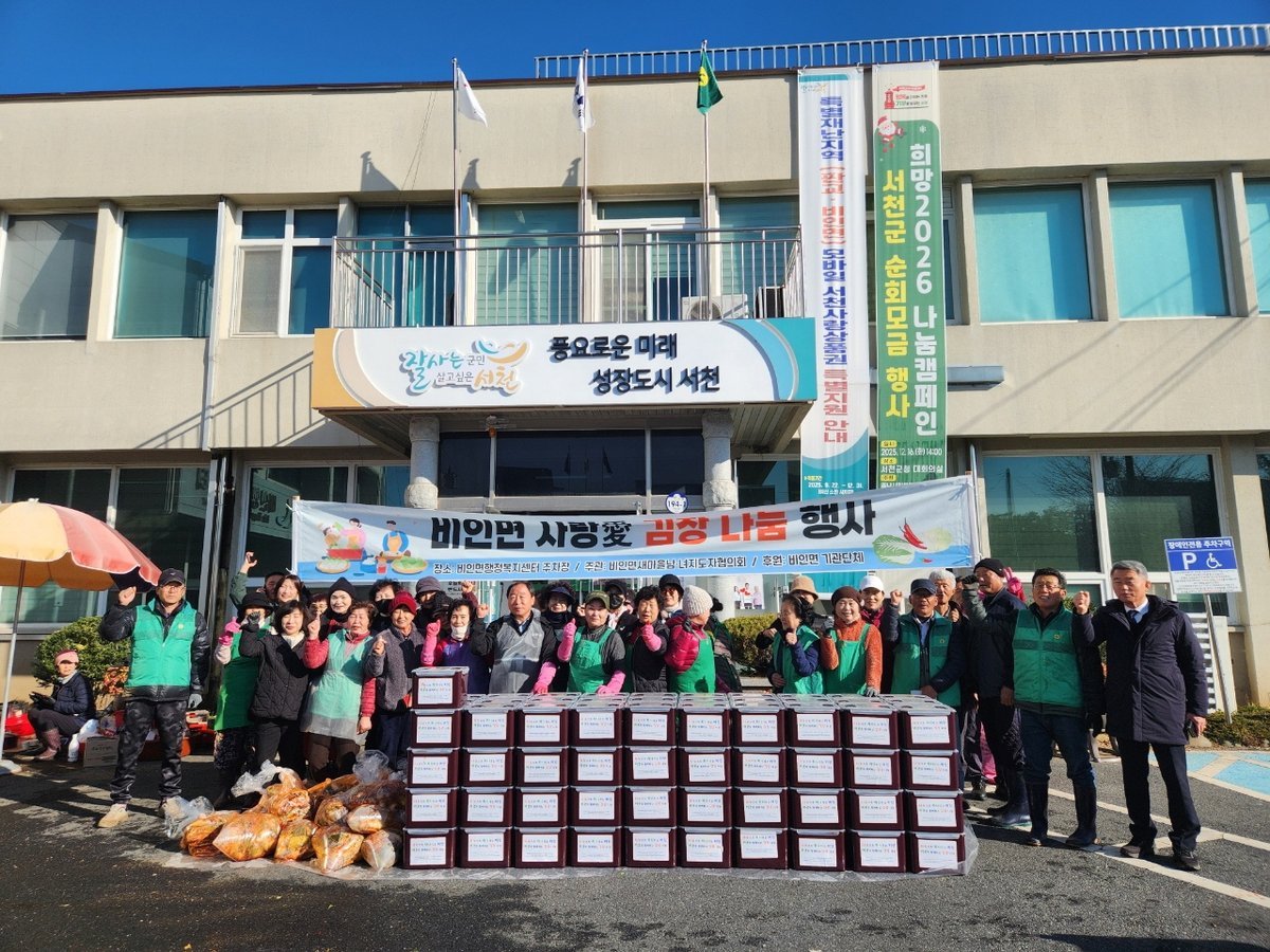 비인면 새마을협의회와 이장단, 주민자치회가 직접 재배한 배추 500포기가 행사에 사용됐으며, 새마을지도자, 이장단, 행복비인후원회, 행정복지센터 직원 등 약 100여명이 참여해 배추 수확부터 절임, 김장까지 이틀간 품앗이 봉사를 펼쳤다.