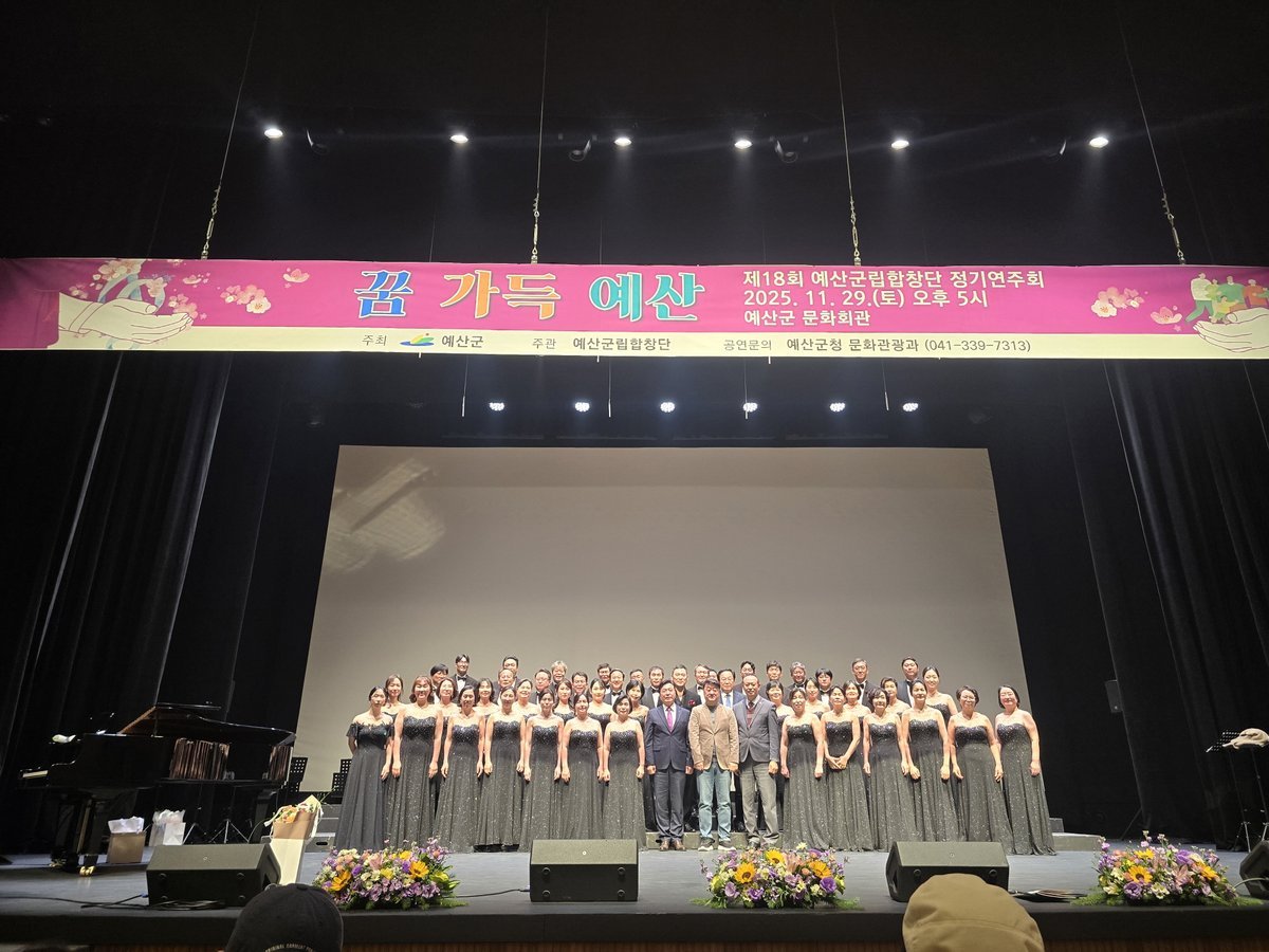 [충청25시] 예산군립합창단은 지난 11월 29일 예산문예회관에서 ‘꿈 가득 예산’을 주제로 제18회 정기연주회를 개최하고 관객들의 뜨거운 박수 속에 성공적으로 마무리했다.