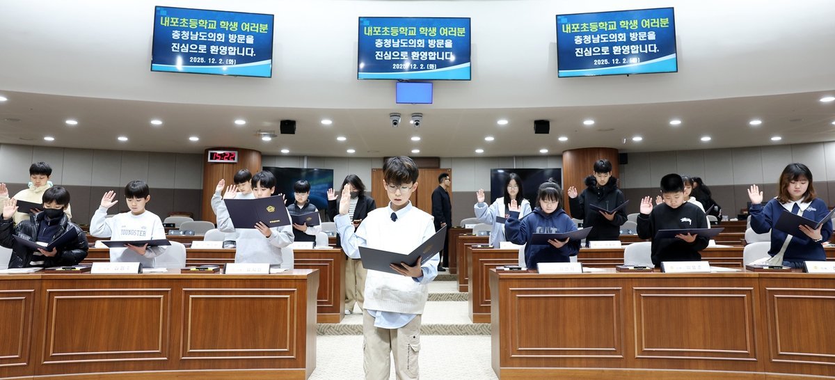 [충청25시] 충남도의회는 2일 홍성 내포초등학교 학생 20명과 지도교사 1명이 참여한 가운데 ‘청소년 의회교실’을 개최했다.