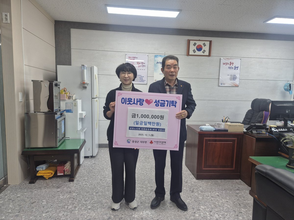 [충청25시] 홍성군 서부면은 지난 1일, ‘희망2026 나눔캠페인’의 힘찬 시작과 함께 대한노인회 서부면분회에서 성금 100만 원을 기탁하며 따뜻한 나눔의 첫걸음을 내디뎠다고 밝혔다.