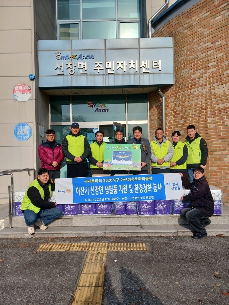 [충청25시] 아산성웅로타리클럽은 3일 연말을 맞아 아산시 선장면 내 취약계층 지원을 위해 두루마리 휴지를 선장면 행복키움추진단에 기탁했다.