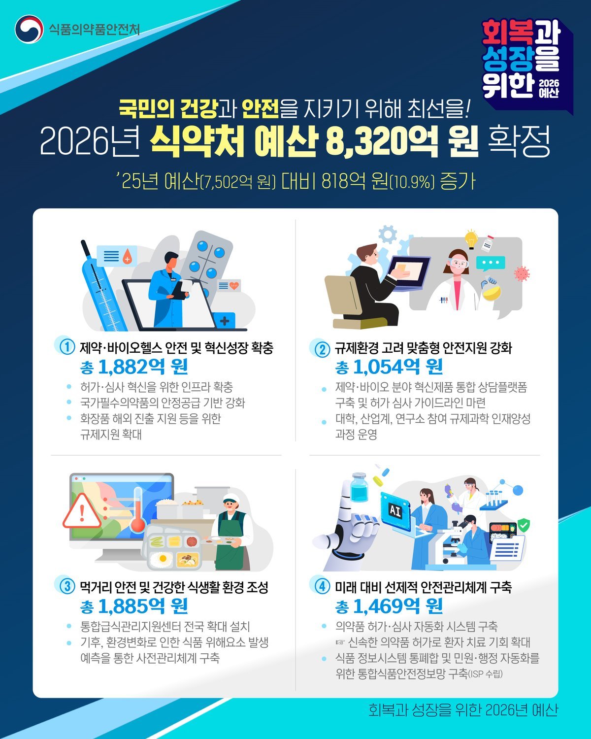 [충청25시] 식품의약품안전처는 2026년도 예산을 올해 대비 818억원 증가한 총 8,320억원으로 최종 확정했다고 밝혔다.