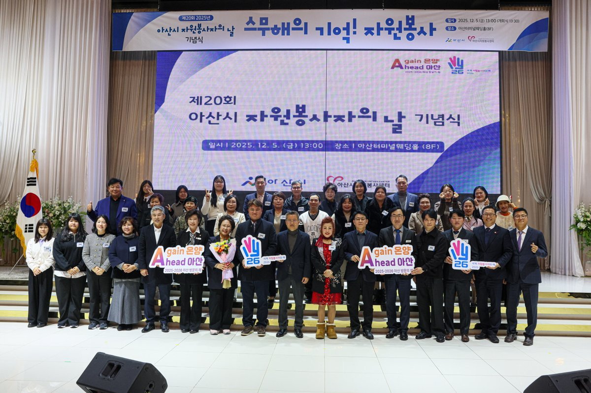 행사는 자원봉사활동 영상 상영을 시작으로 시상식, 기념사 및 축사, ‘2026 세계 자원봉사자의 해&아산방문의 해’맞이 다짐 퍼포먼스, 수상자 런웨이와 축하공연 순으로 진행됐으며, 부대행사로서 자원봉사 아카이브 전시 포토존이 운영됐다.