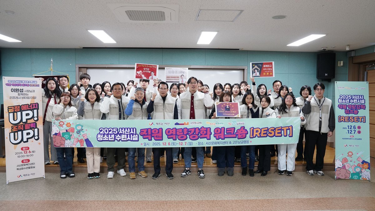[충청25시] 서산문화복지센터은 지난 6일부터 7일까지 1박 2일간 서산시청소년수련관 및 고든남글램핑장에서 ‘2025년 서산시 청소년수련시설 직원 역량강화 워크숍 [RESET]’을 개최했다고 밝혔다.