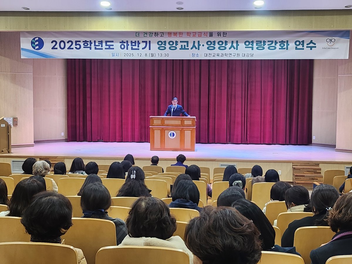 [충청25시] 대전시교육청은 12월 8일 대전교육과학연구원에서 관내 초·중·고·특수·각종학교의 영양교사와 영양사 350여 명을 대상으로‘2025학년도 하반기 역량강화 연수’를 실시했다고 밝혔다.
