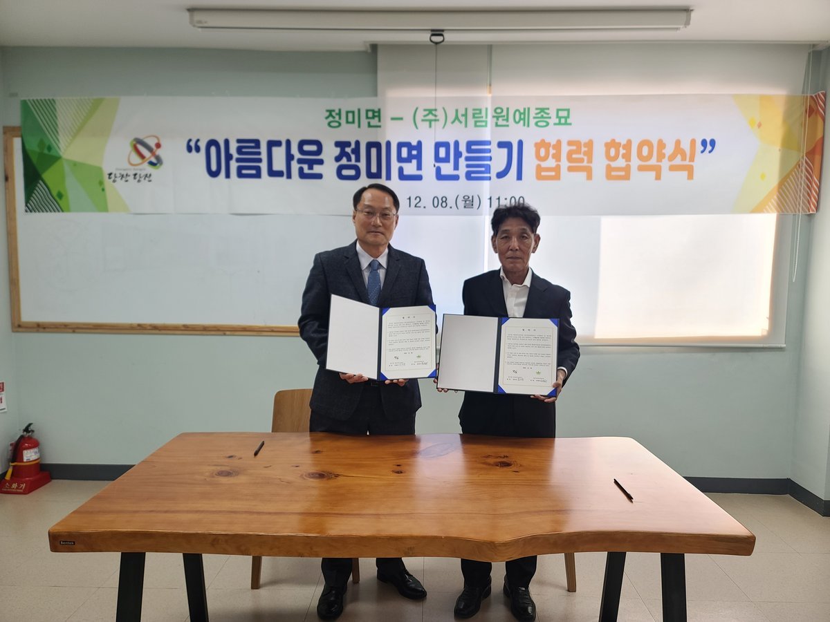 서림원예종묘는 지역 출향 인사가 운영하는 조경·원예 전문 회사로, 정미면과 협력 관계를 구축해 민관이 함께 참여하는 지역 미화 사업을 수행할 예정이다.