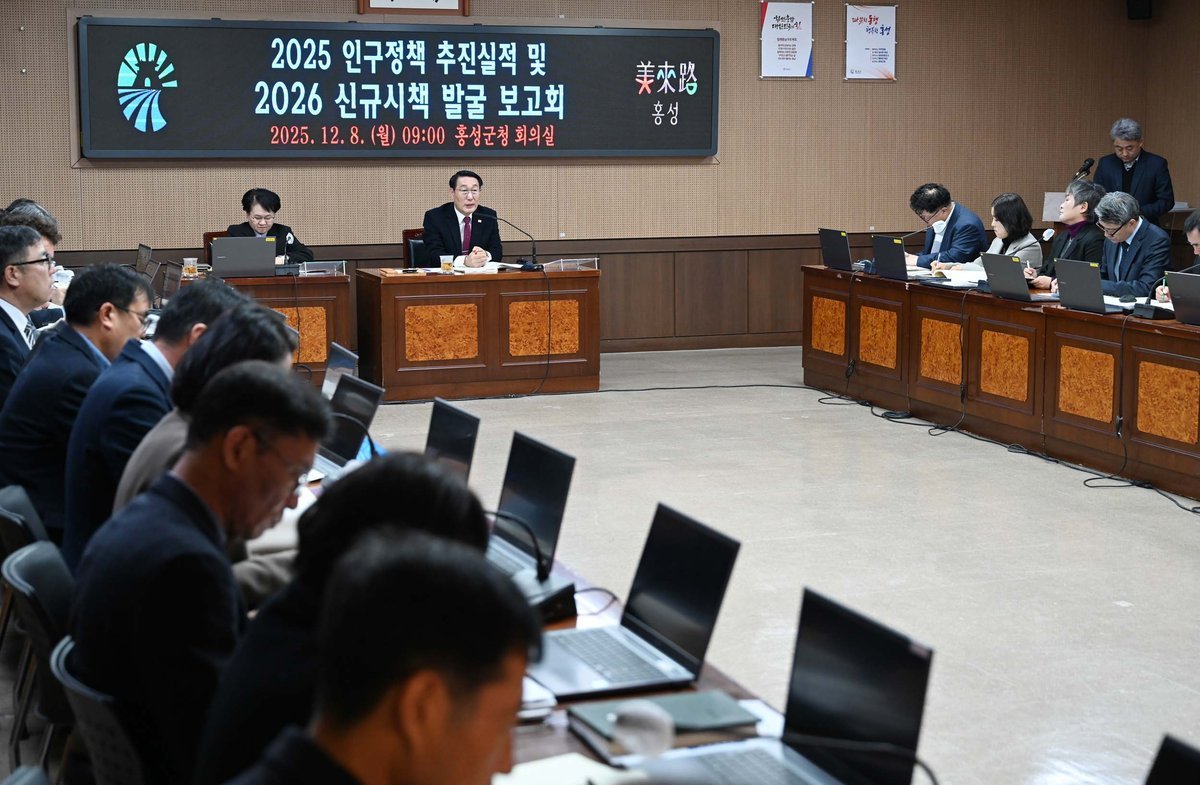 [충청25시] 홍성군은 지난 8일 군청 회의실에서 「2025년 인구정책 추진실적 및 2026년 신규 시책 발굴 보고회」를 개최하고, 2025년 한 해 동안 추진한 인구정책 실적을 점검하는 한편 2026년 신규 시책 추진계획을 공유했다.