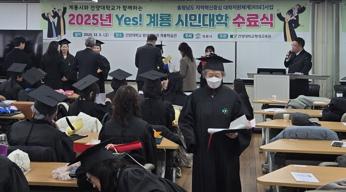 [충청25시] 계룡시는 지난 5일 건양대와 충청남도 지역혁신중심 대학지원체계사업의 일환으로 운영한, ‘2025년도 Yes! 계룡 시민대학 수료식’을 건양대 평생교육원에서 성황리에 개최했다고 밝혔다.