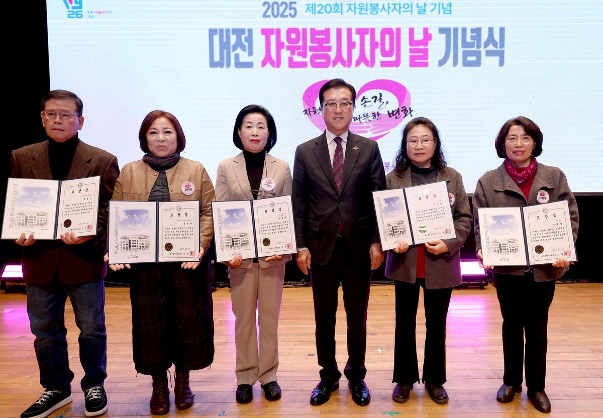 [충청25시] 대전시의회 조원휘 의장은 9일 대전시청에서 개최된 제20회 자원봉사자의 날 기념식에 참석해 자원봉사 수상자를 축하하며, 지역사회에 나눔을 실천해 온 유공자들에게 깊은 감사를 표했다.