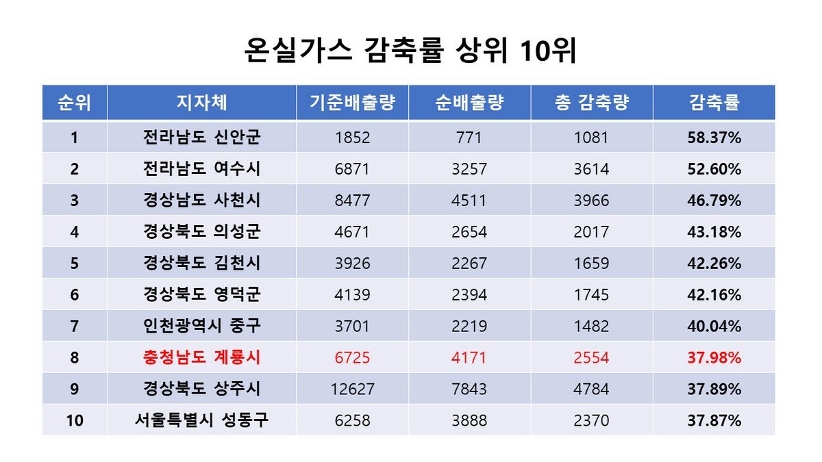 [충청25시] 계룡시는 공공부문 온실가스 감축률 평가에서 전국 243개 지방자치단체 중 8위를 기록해 충청남도 내 유일하게 ‘상위 10개 기관’에 선정됐다고 11일 밝혔다.