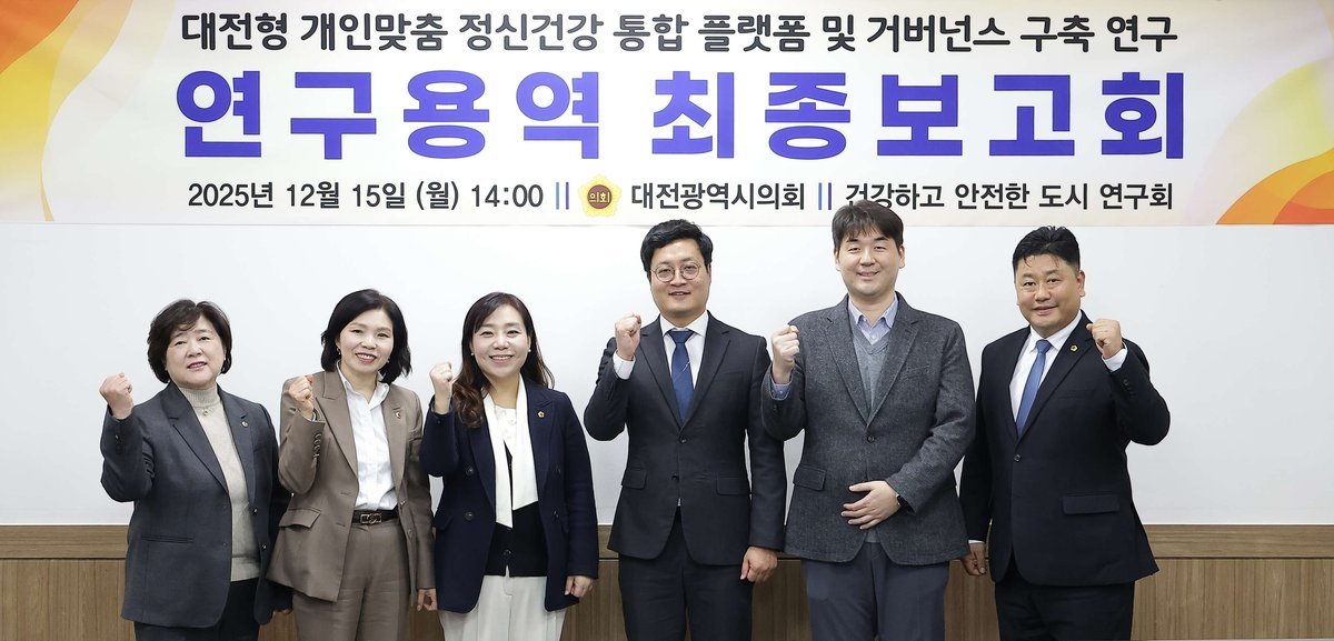 [충청25시] 대전시의회 ‘건강하고 안전한 도시연구회’는 15일 시의회 공감실에서 ‘대전형 개인맞춤 정신건강 통합 플랫폼 및 거버넌스 구축’연구 용역 최종 보고회를 개최했다.
