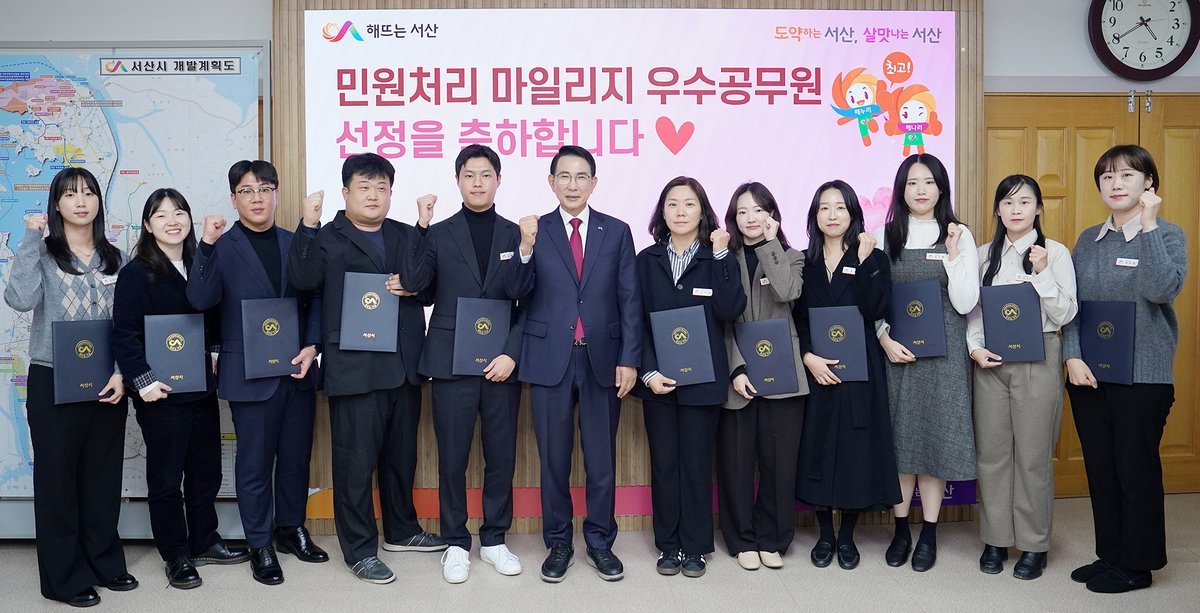 [충청25시] 충남 서산시는 지난 15일 2025년 하반기 민원처리 마일리지 우수공무원을 선정해 시상했다고 밝혔다.