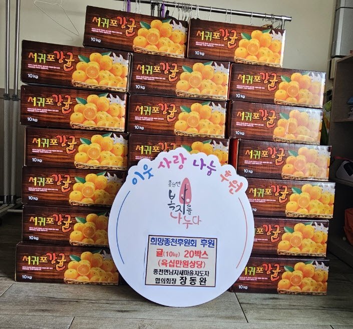 이번에 기탁된 귤은 종천면 관내 경로당 20개소에 전달돼 어르신들의 겨울철 건강을 돕는 데 활용될 예정이다.