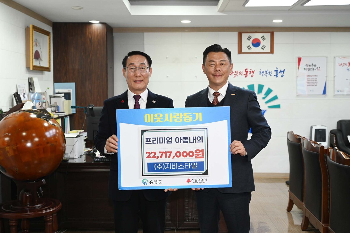 [충청25시] 홍성군은 지난 15일 ㈜지비스타일 이 취약계층 어린이들을 위한 속옷 1000벌을 기부했다고 밝혔다.