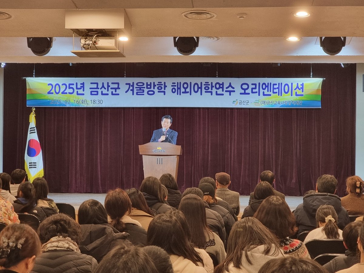 [충청25시] 금산군의 대표적인 글로벌 인재육성 프로그램인 초중생 해외어학연수 출발에 앞서 지난 16일 금산다락원 소공연장에서 학생과 학부모 등 160여 명을 대상으로 사전 오리엔테이션을 개최했다.