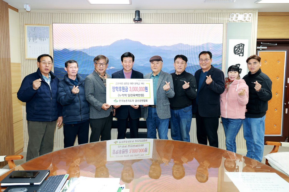 유명일 회장은 “농촌지도자들이 자라나는 금산의 청소년들을 위해 지원할 수 있어 기쁘다”며 “지역의 인재 육성과 가정형편이 어려운 학생을 위한 지원 등을 통해 금산 청소년들이 미래를 위한 꿈을 계속 이어가길 바란다“고 말했다. 박범인 군수는 “따뜻한 나눔을 실천해 주신 한국농촌지도자 금산군연합회에 감사드린다”며 “장학기금은 지역 학생들의 학업 지원과 교육 환경개선을 위해 소중히 사용하겠다”고 전했다.