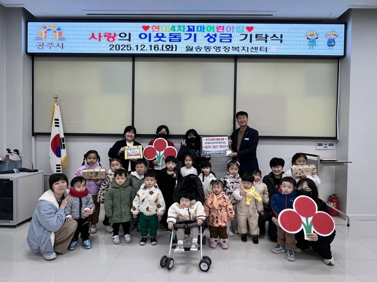 [충청25시] 공주시 월송동은 지난 16일 현대4차꼬마어린이집 원아와 교직원이 뜻을 모아 마련한 성금을 월송동 행정복지센터에 전달받았다고 밝혔다.