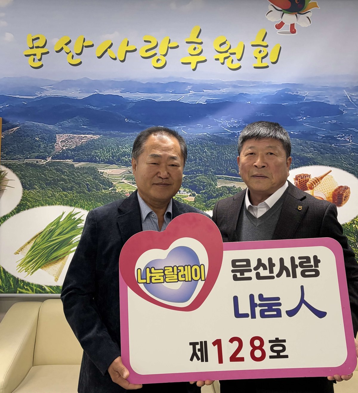 [충청25시] 서천군 문산면 문산사랑후원회는 지난 17일 어려운 이웃을 위해 성금 100만 원을 기탁한 서천농협 최창호 조합장을 ‘문산 사랑 나눔 제128호’로 선정했다고 밝혔다.