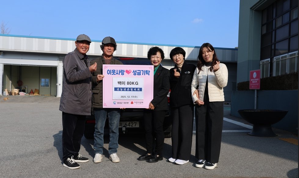 [충청25시] 홍성군 서부면은 지난 17일, 홍성군 귀농귀촌인협의회가 관내 다자녀 가구를 방문해 쌀 80kg을 전달하며 이웃사랑 나눔을 실천했다고 밝혔다.