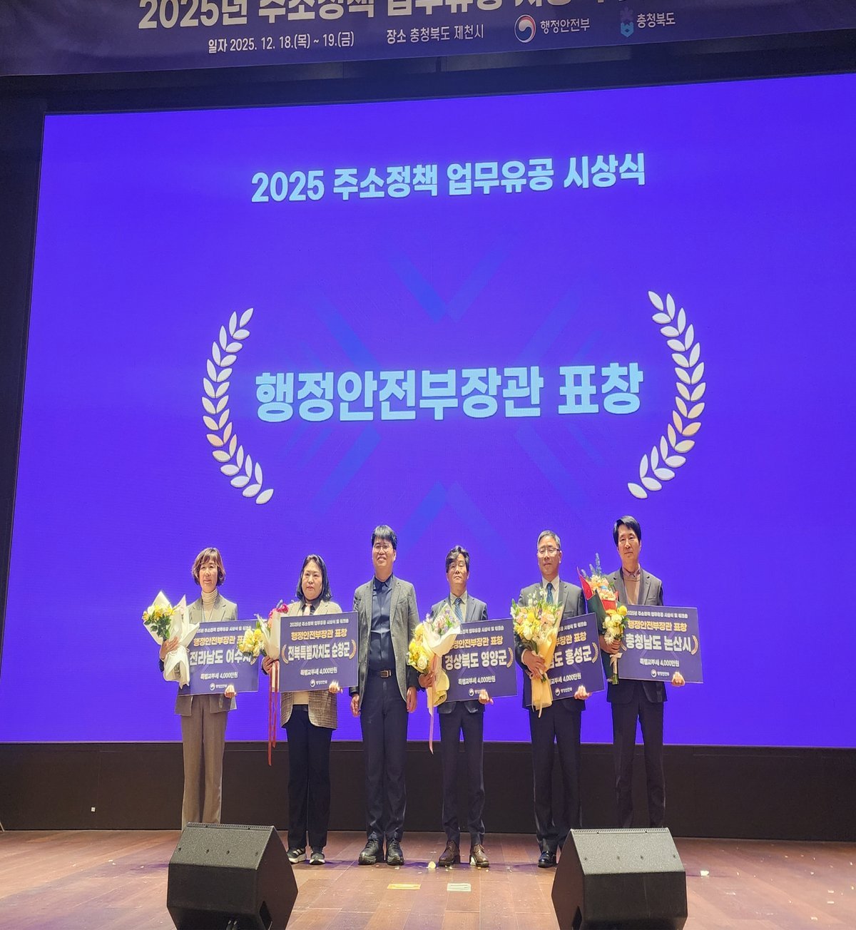 논산시는 18일 열린 ‘2025년 주소정책 성과 공유 워크숍’에서 주소정책 업무 유공 우수기관으로 선정돼 행정안전부장관상을 수상했다고 밝혔다.
