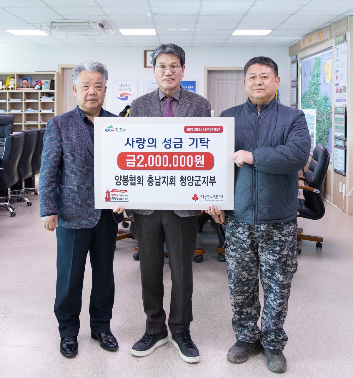 [충청25시] 청양군은 지난 9일 사단법인 양봉협회 충남지회 청양군지부가 어려운 이웃을 돕기 위한 사랑의 성금 200만원을 기탁했다고 밝혔다.